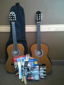 Are you looking for a guitar to begin lessons? Make sure it is in good working condition. The strings  must be easy for the student to press down (nylon strings are the best to begin with).